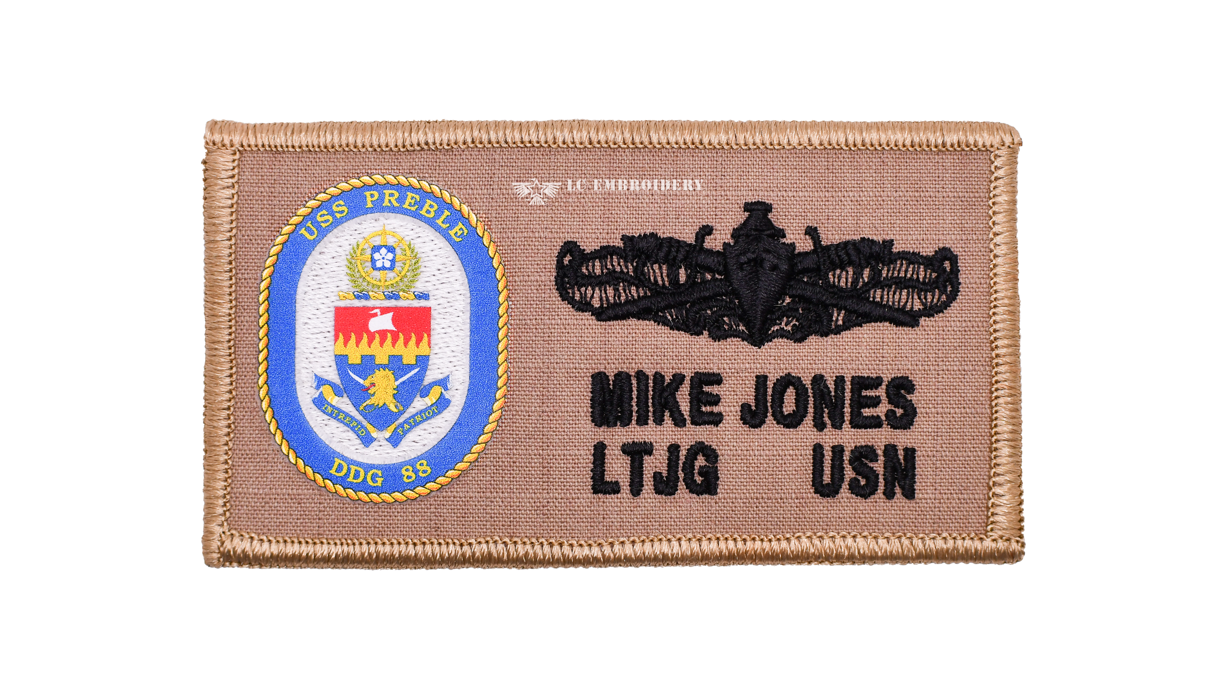 A 2 x 4 standard 2POC patch. The Uss Preble DDG 88 can be used on the Khaki 2POC uniform.