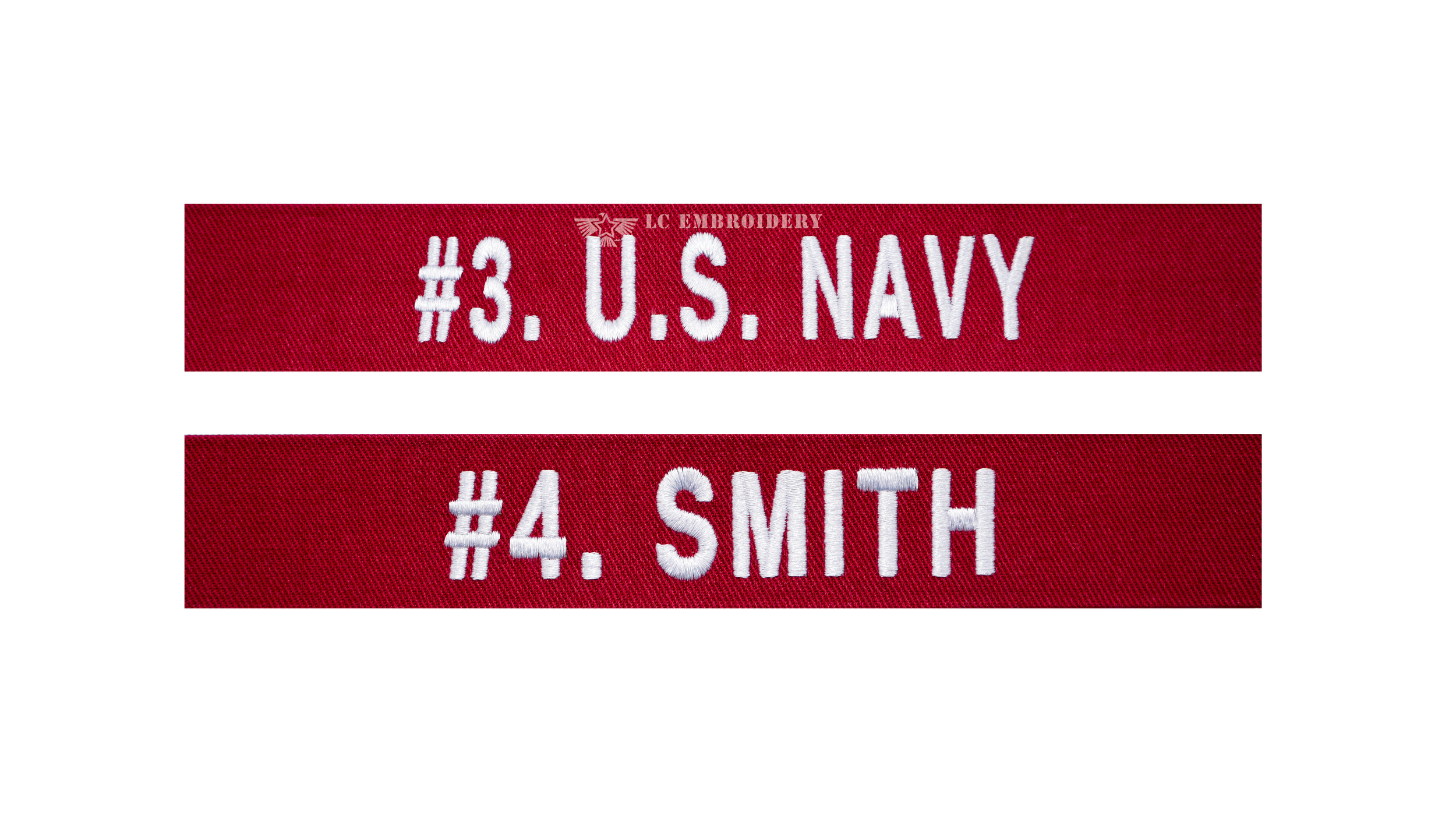 Custom sew-on uniform tape for every U.S. Navy Uniform with your last name.